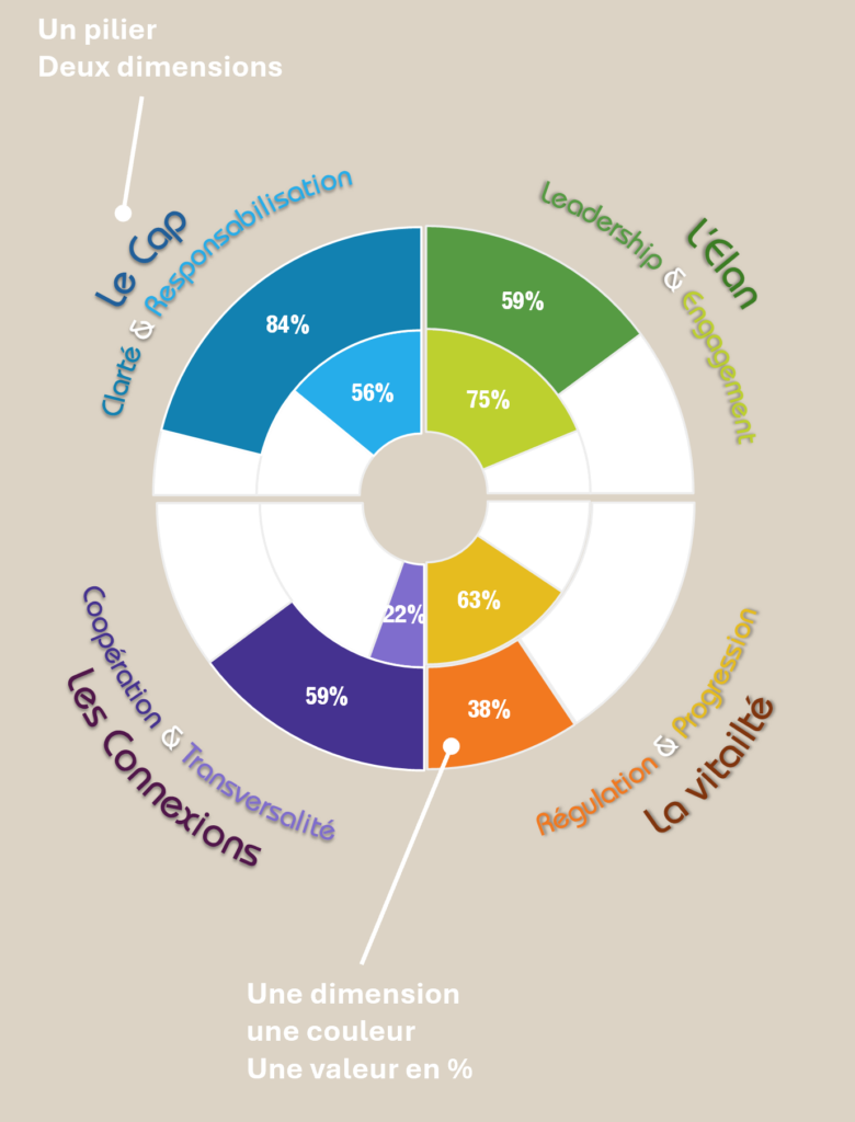 L’analyse croisée des résultats offre une vision complète du niveau d’autonomie, de maturité relationnelle et de cohérence managériale d’un collectif.